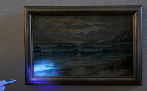 Ultraviolet light reveals alterations such as inpainting, repairs and floating signatures on artwork that are normally invisible. Alterations to an original oil painting will stand out under UV light and will look darker than surrounding areas.